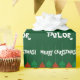 Papel de envoltura brillante con nombre personalizado. Colores rojos y verdes Las luces navideñas de las cerezas envuelven papel para hombres, mujeres y niños. Diseño de vacaciones lúdicas con coloridas bolas de bombilla de luz colgante y mensaje de bienvenida de temporada personalizado. Personalizable con nombre de adulto o niño. Giro divertido con decoraciones navideñas. Color de fondo verde oscuro o personalizado. Divertidas letras de tipografía.