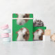 Papel envuelto con una linda foto de la cara del conejillo de indias en un fondo verde
