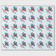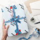 Papel de envoltura de cumpleaños personalizado | avión infantil. Diseño de personalizado de aviones de juguete con nombre de personalizable de niño. Aeronaves / Aviación / Envoltura de regalo para niños o bebés. Los colores azul y rojo.