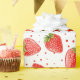 Fresas y puntos rojos y blancos en un patrón ininterrumpido, con el tema de la ducha de bebé.