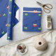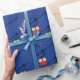 Papel azul con góndolas rojas y verdes Navidades envolver papel.