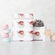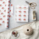 El papel de envolvimiento luce un patrón repetido de alegres rostros de Santa, cada uno adornado con un clásico gorra rojo y una sonrisa lúdica, perfecta para el envoltorio de regalos de vacaciones.