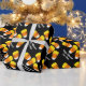 Felices rollos de papel de envoltura de maíz de dulce negro de Halloween. Diseño personalizado de envoltura de regalo. Añade tu propio nombre y saludo humorístico. Impresión divertida para niños y adultos. Diseño de estilo kawaii.