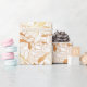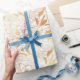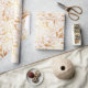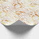 Papel de envoltura con estampado floral. Magnolias doradas sobre fondo blanco.