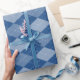Papel de envoltura de patrón de argyle azul | Color azul y blanco o personalizado. Impresión de la moda de diamantes para el elegante cumpleaños, Boda, vacaciones de Navidades, aniversario, etc. Diseño retro vintage con color de fondo de personalizable.