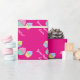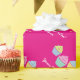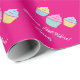 Papel de envolver de bizcocho con texto personalizado. Cheerful giramen el patrón de pastel de taza de neón rosada para cumpleaños, ducha de bebé, boda, dulce 16, Navidades, etc. Diseño divertido de chica con dulces coloridos y mensaje personalizado. Tema de los postres gastronómicos. Papel de envoltura de bonito para adultos y niños.