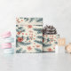 Decorado con rojos vibrantes y verde, este papel de envolvimiento festivo presenta ramas de pino y flores intrincadas, perfectas para añadir encanto a los regalos de vacaciones durante la temporada alegre.
