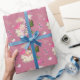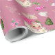 Papel envuelto de colores brillantes adornado con extravagantes motivos navideños como Santa, regalos, árboles y adornos, perfecto para agregar alegría festiva a cualquier regalo durante la temporada de Navidades.