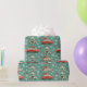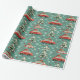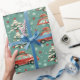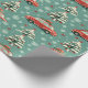 Alegres Navidades envueltos en papel con coches rojos cargando árboles y regalos, mostrando un diseño caprichoso perfecto para regalos y celebraciones de vacaciones.