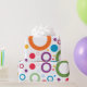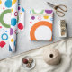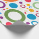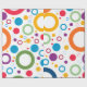 Papel de envoltura divertida con un patrón colorido de círculos y puntos de polka. Este funky papel de envoltura es perfecto para regalos de cumpleaños y otras ocasiones especiales.
