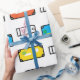Papel de envoltura con motivos de maleta alegre y colorido, perfecto para un regalo, paredes o cajones.