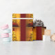 Aquí hay un papel de envolvimiento de árbol de Navidad de estilo vintage con un tema de color oro y burdeos. Este artículo le dará a sus regalos envueltos un aspecto elegante. Susan creó este artículo a partir de una fotografía original de decoraciones navideñas. Vea la cinta de ajuste a continuación.