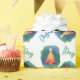 Navidades festivos envolviendo papel, con un colorido patrón de acuarela árbol de Navidad. Feliz Navidad, en texto azul y verde, se puede personalizar para leer lo que quieras.