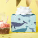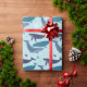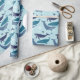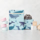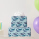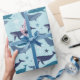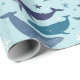 Tres grandes ballenas azules nadando con sus amigos estrellas adornan este papel de envoltura. El cuerpo de las ballenas tiene una textura ligera para mayor interés.