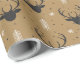 Este delicioso papel de envolvimiento exhibe un caprichoso patrón con siluetas negras de reno adornadas con majestuosos cánticos en un fondo cálido y terrenal.