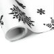Copos de nieve negros en un envoltorio blanco de regalo. Un envoltorio de regalo en blanco y negro perfecto para envolver regalos durante la temporada de Navidades o invierno.