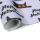 El "Papel de relleno de gatos negros sin foco para Halloween" tiene gatos negros acechando cada centímetro, con el texto de "Halloween feliz" que agrega un toque espeluznante y elegante para envolver regalos inquietantes.