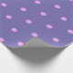 Envoltura para regalo de lavanda salpicada de grandes puntos de polka rosa.