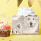 Este papel de envoltura presenta una reproducción de mi acuarela de un samoyado.