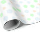 Papel de envoltura con puntos azules, verdes y naranjas en tonos pastel.