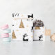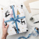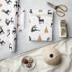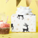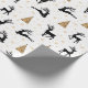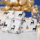Este encantador papel de envolver presenta encantadoras siluetas de reno entre árboles dorados y estrellas brillantes, creando un ambiente festivo perfecto para las vacaciones.