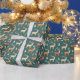 Los renos de Santa Colina se alinean sobre un oscuro fondo verde verde azulado, entrelazados entre unos pocos simples árboles navideños. Sencillo pero de temporada, es un conjunto divertido y colorido para los niños de todas las edades.