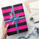 Papel de envolver diseñado con un patrón rayado rosado y negro en gran tamaño. Personalizar el color rosa caliente de una manera fácil.