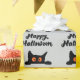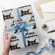 El "Papel de envolver gris con gatos negros para Halloween" reúne elegantes gatos negros y las palabras "Halloween feliz" en un patrón impecable, lo que lo hace ideal para envolver dulces y sorpresas.