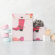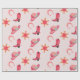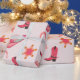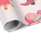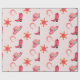Papel de envoltura rosa de vaca para el tema del cumpleaños de rodeo. Este papel de envoltura incluye gorra de vaquera, zapato de vaquera, zapato de caballo con estrella rosa.
