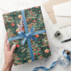 Una vibrante exhibición de papel envuelto de Navidades con pinos hermosamente decorados, adornos brillantes y estrellas encantadoras, perfecto para realzar momentos de regalos vacacionales.