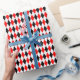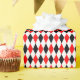 Papel de envolver diseñado con un patrón de arlequín rojo, negro y blanco. Se puede cambiar el blanco por otro color de una manera sencilla.