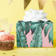 Transporte a una isla tropical con este envoltorio de regalo de moda rosa y verde palma.