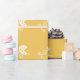Papel de envoltura amarillo neutro con un lindo carro de bebé y nombre personalizado o monograma. Una idea muy agradable para la ducha de bebé y los regalos de primer cumpleaños. Adorable coche de bebé / buggy / diseño de param infantil con corazones pequeños. Dulce envoltura de regalo para la nueva madre o madre. Imagen neutral para niño o chica. Color del fondo del personalizable: amarillo suave, rosa pastel, violeta, gris o azul claro. Tipografía de escritura elegante.