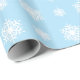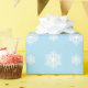 Este papel de envoltura azul claro está decorado con un patrón de copos de nieve delicados y detallados para crear un envoltorio de regalo de bonito para todos sus regalos de invierno.