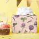 Flores de trébol rojo y hojas en un estilo rústico de estilo rústico sobre un fondo rosado para envolver productos de miel o regalos para un boda o una ducha de bebé.
