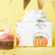Papel de relleno de calabaza de Baby Shower Fall con calabaza de Naranja de acuarela y girasoles amarillos en un fondo blanco con texto Una calabaza pequeña está en camino.