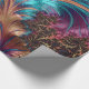 Papel de envolvimiento brillante de diseño de plumas fractales multicolor.