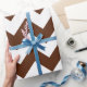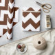 Papel de envoltura diseñado con un patrón de chevron marrón y blanco de tamaño extra grande. Se puede cambiar el color marrón por otro.