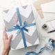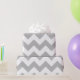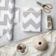 Papel de envoltura diseñado con un patrón de chevron gris y blanco de tamaño extra grande. Puede cambiar el gris por otro color.