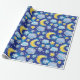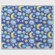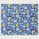 Un cielo celestial celestial azul celestial, adornado con estrellas y lunas amarillas