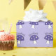 Hongos personalizados púrpuras con un nombre por encima de la gorra. El fondo es lavanda pálida.