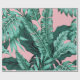 Salto de palmas tropicales y papel de ajuste de impresión rosada