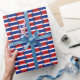 Una bandera hexagonal en forma de bandera de Tailandia forma la base del diseño teselado en este papel de envoltura. Esta sería la manera perfecta de envolver un regalo para o de alguien con conexión tailandesa.