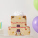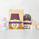 Un pájaro en un gorra sosteniendo una tarta de acción de gracias. Este diseño se ve realmente efectivo en este papel de ajuste