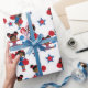 Dale a tus regalos un poco más de alegría esta temporada con nuestro regalo de porrista afroamericano. Este documento de envoltura presenta a varios hermosos jóvenes chicas afroamericanos con uniformes de animadores rojos y blancos, completados con pompas. Sus regalos destacarán y sus seres queridos apreciarán la atención que pusieron en su celebración.