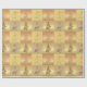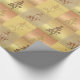 Este documento de envoltura presenta una imagen lustrosa y estilizada de un árbol de Navidad acompañado de texto de "Felices Fiestas". El fondo se compone de baldosas cuadradas de tonos dorados y rosas.