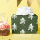 Elegantes navidades envueltos de papel con fondo verde forestal con un diseño de árbol de navidad contemporáneo.