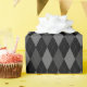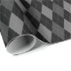 Papel de envoltura diseñado con un patrón de argyle gris y negro de gran tamaño.