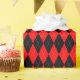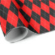 Papel de envoltura diseñado con un patrón de argyle rojo y negro de gran tamaño.