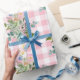 Papel de envoltura de ducha de bebé de Gingham Wildflower rosada.